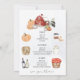 Watercolor Cabin, Farmhouse, Pumpking Patch Cozy Theme Modern Bachelorette Weekend schedule timeline. Or just a family reunion Fall gathering. This invitation features a watercolor farmhouse and pumpkins. The fun watercolor back has a place for you to add your custom details to your bachelorette party and bachelorette weekend. Please select "Click to customize further" option under Personalize this template.