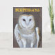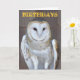 Funny birthday card that features the photo image of a perched Barn Owl, along with a humorous birthday greeting inside. Select your greeting card paper type.