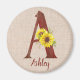 Barn Wood Letter A & Sunflowers Personalized Magnet