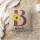 Barn Wood Letter B & Sunflowers Personalized Throw Pillow