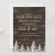 Barn wood Rustic Pine trees, winter save the dates. Matching products also available.