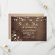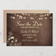 Announce your special day with this charming rustic Save the Date card, featuring wood grain texture, glowing string lights, and elegant gold floral accents. With a cozy and romantic look, this card sets the perfect tone for fall or winter weddings, barn receptions, or boho celebrations.