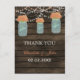 Rustic Barnwood, dangling string lights with coral flowers in a mason jar wedding Thank You Postcards. Matching products also available.