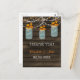 Rustic Barnwood, dangling string lights with fall leaves in a mason jar wedding Thank You Postcards. Matching products also available.