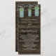 Rustic Barnwood, dangling string lights with sage flowers in a mason jar wedding programs tea length. Matching products also available.