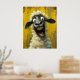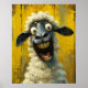 Turn any wall into a laughter-inducing focal point with this vibrant, high‐quality poster featuring an outrageously expressive sheep. Rendered in bold brushstrokes and rich hues of golds and slate blues, this cartoon sheep flaunts wide, googly eyes and a comically toothy grin that seems to burst right off the page. Set against a distressed golden‐yellow wooden‐plank backdrop, the sheep’s curly white fleece and cheeky personality pop in contrast—guaranteed to brighten nurseries, dorm rooms, game rooms, or quirky office spaces. Perfect for animal lovers, fans of whimsical art, or anyone who appreciates a dash of barnyard humor.