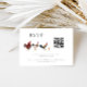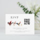 Rustic and boho wedding RSVP card featuring watercolor illustration of chickens. There is also a QR code.