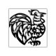 this cute stylized barnyard rooster stamp has adorable cutouts with feather and flower designs in the interior of the roosters body.