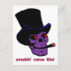 Baron Samedi, master of the undead - a skull with penetrating red eyes, wearing a top hat and smoking a glowing cigar
