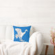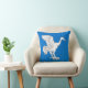 “(Fieldless) A crane rising contourny argent.” Background color (shown blue) can be changed on request. Back of pillow is a medieval-era pattern in coordinating colors.