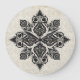 European baroque style ornamentation adorns this wall clock. Background is a traditional grey and white damask.