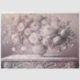 An intricate floral still life centered around a bouquet of lush, full-bloom peonies in varying shades of blush pink and soft ivory. The flowers are elegantly arranged in an ornately detailed vase, which rests atop a highly decorative baroque-style table. The table features intricate carvings and ornate embellishments, adding an air of luxury and sophistication. A stunning piece to decoupage onto furniture, home decor or as a beautiful wall hanging.