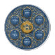This Passover Seder plate may serve as a cutting board, display tray or candle holder during the week of Passover. The glass board is featured in the Baroque Blue Passover Collection, which includes matching products, such as a table runner, matzah covers, napkins, netilat yadayim handwashing towel, mugs, reclining pillows, and more.