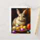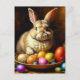 Baroque-style brown Easter bunny with colorful Easter eggs.