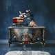 Baroque Butterfly Navy Blue Red Ornate Patina, decoupage tissue paper.