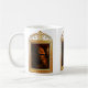 Comical image of a framed gorilla in a golden baroque setting, printed on a mug in a chic and quirky style. Perfect for an original gift, this visual blends classical art and animal humor with a refined touch. For lovers of unique and funny objects.