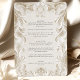 Elevate your wedding dining experience with this exquisite Baroque Elegance Wedding Menu Card. Featuring an opulent design of intricately carved flourishes in rich shades of ivory and gold, this vertical menu card exudes sophistication and timeless luxury. The ornate details and elegant typography make this card a perfect choice for a formal, upscale wedding. The front of the card displays the names of the couple in a refined script, while the back outlines the gourmet menu in a layout that complements the lavish design. This menu card is ideal for those seeking to add a touch of grandeur and classic charm to their wedding reception.