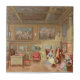 This product features a rare 1888 color chromolithograph, which offers a glimpse into the Baroque interior decorating style of 17th century upper class home in France. An unfortunate downside of the exquisite murals and symmetrical paneling which covered the walls was the regrettable forgoing of permanently fixed furniture. Instead, movable pieces were placed where it was convenient, then pushed aside if one was in the mood to stare at the walls. For necessary furnishings, such as beds and wardrobes, it was often the case that the walls would simply be built to accommodate them, allowing the architect to designate a specific location for the cumbersome furniture without having it disrupt the flow and order of the room. The mirror set above the fireplace was a relatively new addition to interior design, one that King Louis XIV made fantastic use of in his Versailles palace.