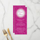 A circular frame against a hot pink floral damask pattern gives this menu card a rich, opulent feel. Use it as a menu or any printed piece you might need for your wedding, shower or engagment party. Customize it with your own menu or other information on the front and add your name(s) and event date on the back against the same damask pattern. Available in alternate colors with matching products.