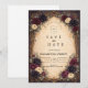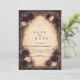 A richly detailed gothic design infused with baroque elegance, featuring deep plum, ivory, and muted charcoal florals woven into an ornate gold framework. The dramatic contrast between the dark, moody background and the warm parchment center creates a striking, romantic atmosphere. Delicate vines and antique-inspired detailing add a sense of old-world luxury, while the balanced composition keeps the layout refined and timeless. Perfect for couples drawn to dark romance, vintage opulence, and an unforgettable, statement-making celebration.