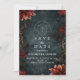 An opulent gothic wedding design featuring dark botanical flourishes, rich burgundy florals, and antique gold baroque framing. Set against a textured charcoal background, this moody composition is ideal for romantic Halloween weddings, alternative ceremonies, or dramatic vintage affairs. Fully customizable for names, date, and location—crafted for couples with a flair for the mysterious and the magnificent.