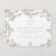 This sophisticated wedding card features a stunning baroque floral design. The intricate ivory and cream-colored patterns adorn a pristine white background, enhanced by elegant script in black and gold. The luxurious design elements create a timeless and regal frame around the text, making this set perfect for a high-class wedding celebration. Ideal for couples looking to add a touch of elegance and opulence to their special day, this set provides everything you need to beautifully invite and inform your guests.