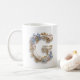 This coffee mug features an ornate initial letter 'G' in Baroque style and is fit for a princess. It would be a lovely bridesmaid gift, or Mother's Day or birthday gift.