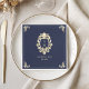 Elegant navy blue and gold baroque wedding napkins with ornate vintage frame and customizable monogram. A stylish addition to your reception tables, cocktail hour, or wedding dinner setting. Perfect for couples seeking a formal and luxurious wedding theme. These personalized napkins coordinate with the full navy blue and gold baroque wedding suite for a cohesive and timeless event look.