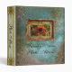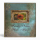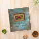 Customisable ornate family photo album. Grungy blue book cover look, with bronze picture frame and floral ornaments. Frame can be removed, and the photo can be replaced with one of your choice.