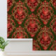 This is a digitally enhanced print derived from a vintage ca. 1900 baroque rococo style pattern of large-scale scrolling foliate and floral medallions dripping with foliate swags and roses. Printed in green, red, pink and white on red ground.