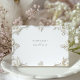 This exquisite wedding invitation and RSVP card set features a sophisticated baroque floral design with intricate ivory and cream-colored patterns on a pristine white background. The elegant script in black and gold adds a touch of timeless class, perfect for a luxurious wedding celebration. The detailed floral motifs create a regal frame around the couple's names and RSVP instructions, making it an ideal choice for those seeking a blend of classic and modern elegance. This set is perfect for upscale weddings, providing a beautiful way to invite and gather responses from your cherished guests.