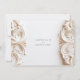This exquisite wedding invitation and RSVP card set features a sophisticated baroque floral design with intricate ivory and cream-colored patterns on a pristine white background. The elegant script in black and gold adds a touch of timeless class, perfect for a luxurious wedding celebration. The detailed floral motifs create a regal frame around the couple's names and RSVP instructions, making it an ideal choice for those seeking a blend of classic and modern elegance. This set is perfect for upscale weddings, providing a beautiful way to invite and gather responses from your cherished guests.