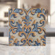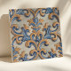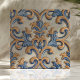 Baroque Scroll Damask Blue Gold Italian Style Ceramic Tile