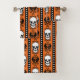 Baroque Skull Stripe Pattern Orange Black Bath Towel Set