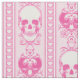 This gothic design has an ornate striped pattern of baroque ornaments, skulls, and hearts in a sweet pink and white color scheme.