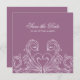 Customizable Save the Date announcement card template with classic baroque style ornaments on white and lavender purple (color can be changed!).