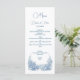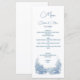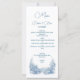 This exquisite wedding wedding part menu embodies the opulent charm of the baroque Victorian style. It features a smooth dust blue ornate design, adorned with intricate floral patterns and delicate swirls, evoking a sense of timeless elegance. The typography, although relatively modern, maintains clean lines and a sleek appearance, adding a contemporary touch to the overall design. T
