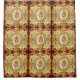 A baroque tapestry pattern featuring flowers, roses, ribbon, and scroll design. In rich colors of amber, green, cream, blue and pink. Very ornate and pretty.