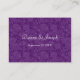 A circular frame against a violet floral damask pattern gives this reception card a rich, opulent feel. Add customized text within the frame. The damask pattern is repeated on the reverse to highlight the couple's names and event date or any other information desired. Available in alternate colors with matching products.