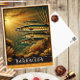 Dive into the captivating underwater world with this Barracuda | Cute Family Vintage Animal Postcard. This postcard features a breathtaking vintage-style illustration of a barracuda family swimming gracefully through crystal-clear waters at sunset. The serene ocean scene is bathed in hues of gold and coral, with sunlight streaming through the water and casting a magical glow on the sleek, shimmering bodies of the barracudas.