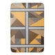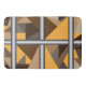 Barred bath mats. Barred is an abstract design created by Vexenwraith and consists of brown, orange, tan, and gray shapes behind silver gradient bars.