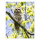 On a bright spring day a barred owl perched and staring toward the photographer.