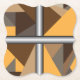 Barred paper coasters. Barred is an abstract design created by Anna M. Asbury and consists of brown, orange, tan, and gray shaped behind silver gradient bars.