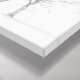 Canvas print of a minimalistic image of a row of barren trees during a blizzard in winter in a completely snow white world background. This is a color image, although it looks like b/w.