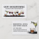Red and white wine glasses, whiskey tumbler, brandy sifter, and martini glass featured on this bartender business card, personalized with your choice of text and fonts.