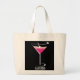 Bartender tote bag for your class materials. Pink Martini Glass on black background. Customize your colors, font and tote bag style online.