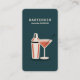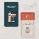 A vintage business card for a bartender, a pub, a mixologist, a party barkeeper. It comes with an illustration of a cocktail shaker and a martini glass in retro colors.