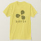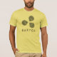 A graphic design T representing the three quarks in Baryon in a floral like arrangement.