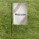 Flag bracket is super easy to assemble. There is a prong fork that goes into the ground. I dug a shallow hole to bury the prongs and still had enough height. Reinforced stitching on for the flag opening. Colors are true to the website. Mona Lisa's sign with the text is easy to read, the text is clear and not blurry.