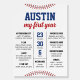 Baseball 1st Birthday Rookie Year Milestone Foam Board